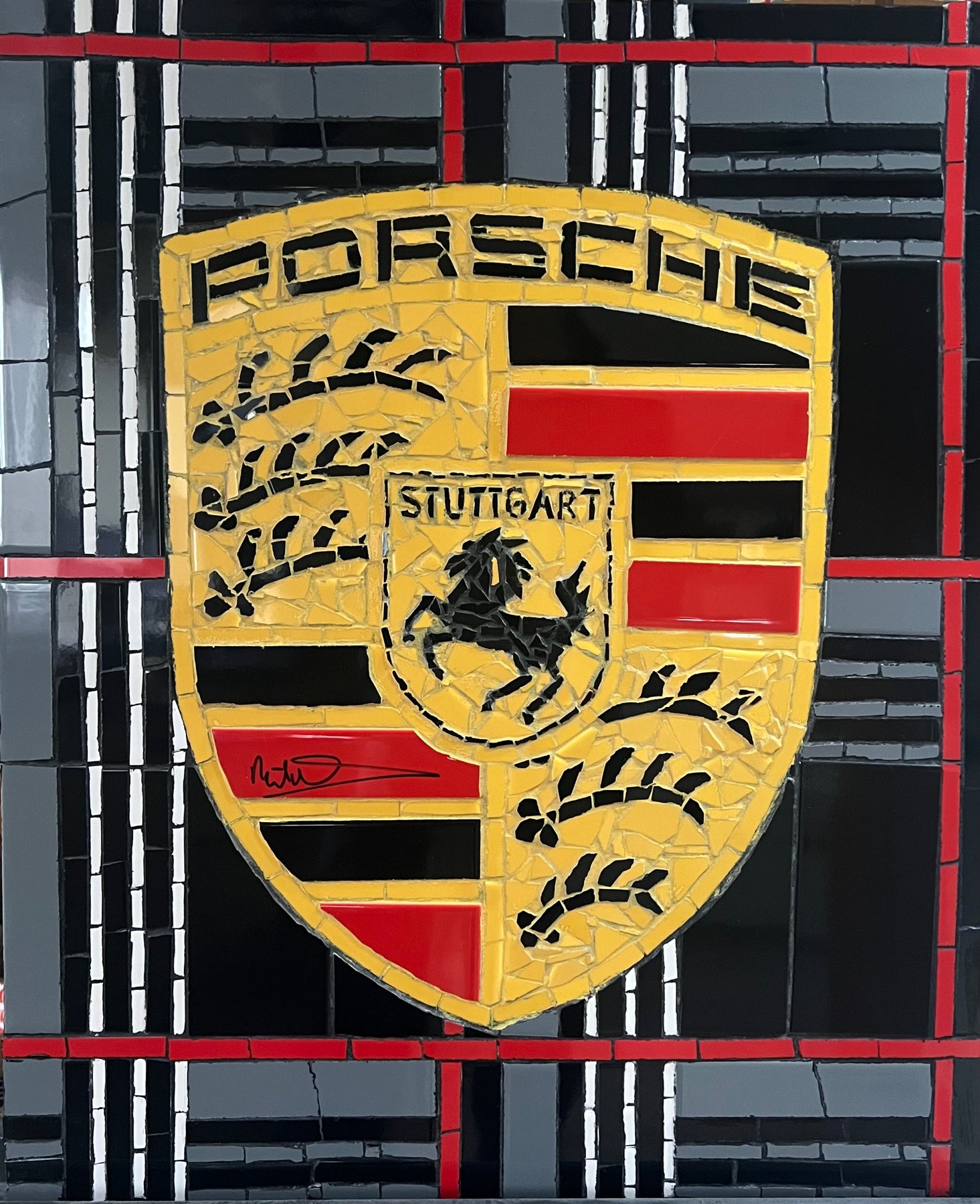 These handcrafted ceramic mosaic badges celebrate the icons of motorsport - from Ferrari and Porsche to any marque you admire. Each piece is individually designed and built to order using hand-cut ceramic tiles, capturing the character and heritage of your chosen brand in sculptural form.