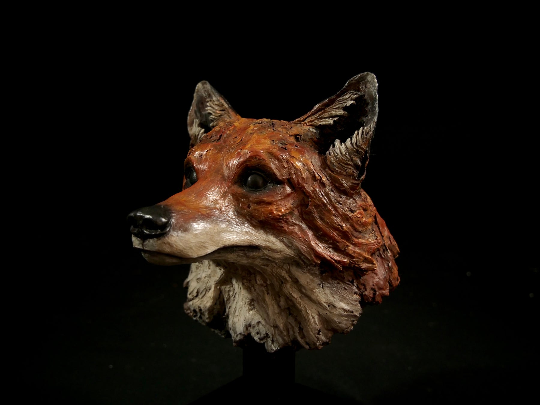 This sculpted head portrait captures the fox not as a caricature of cunning, but as a fully realised presence; alert, intelligent, and cloaked in the quiet magic that has long inspired both reverence and myth. The adult fox portrayed here is a seasoned hunter: sharp-eyed, adaptable, and enduring.