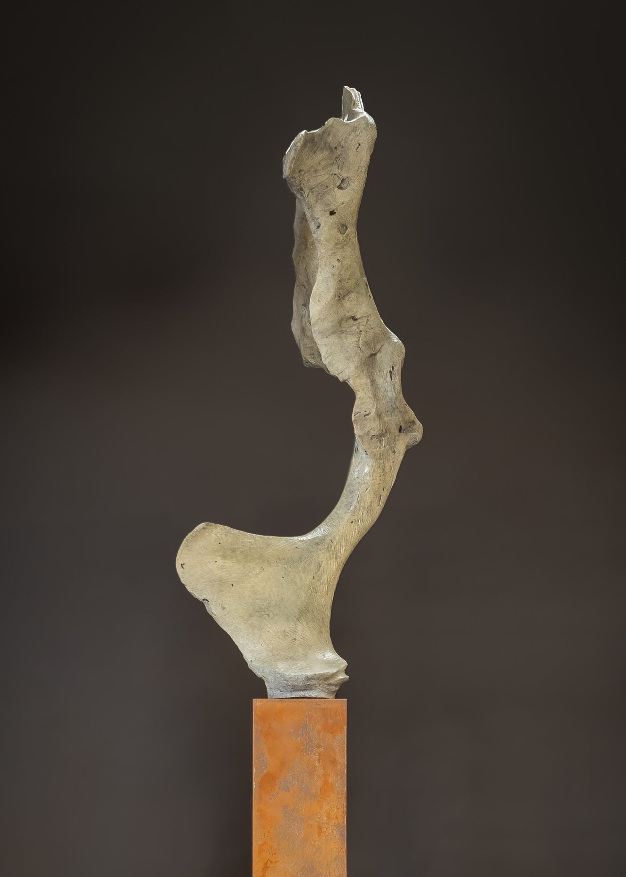This is the latest sculpture in my Bone Form series. The sculpture is standing on a 1 metre wooden plinth. The piece of bone that inspired me to make this sculpture made me think of a moving, dancing figure.