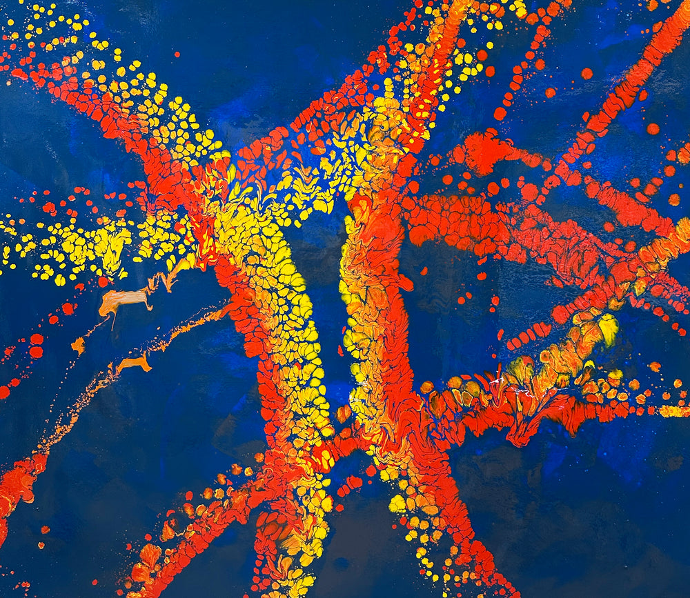 Working from his custom-built Gloucestershire studio, Swarez is known for pushing technical and creative boundaries. He formulates his own paints and works on vast canvases, pouring, layering, and manipulating colour to achieve a sense of energy and depth that can’t be replicated. The result is art that feels alive - pieces made not just to fill a wall but to command it.