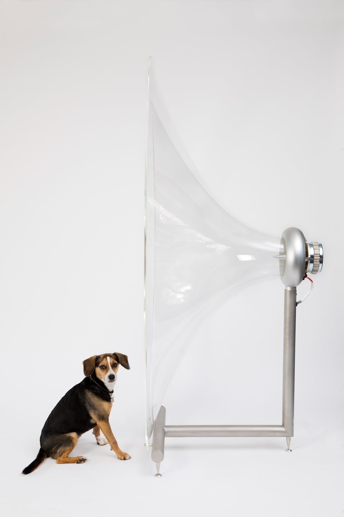 Jetstream Loudspeaker System by Ferguson Hill Studios — a hand-built British hi-fi masterpiece combining sculptural acrylic horn speakers, spherical bass units, and a precision amplifier. Transparent, powerful, and acoustically pure in both form and performance.
